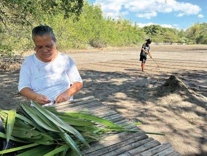 as Editha Morayag prepares nipa leaves for