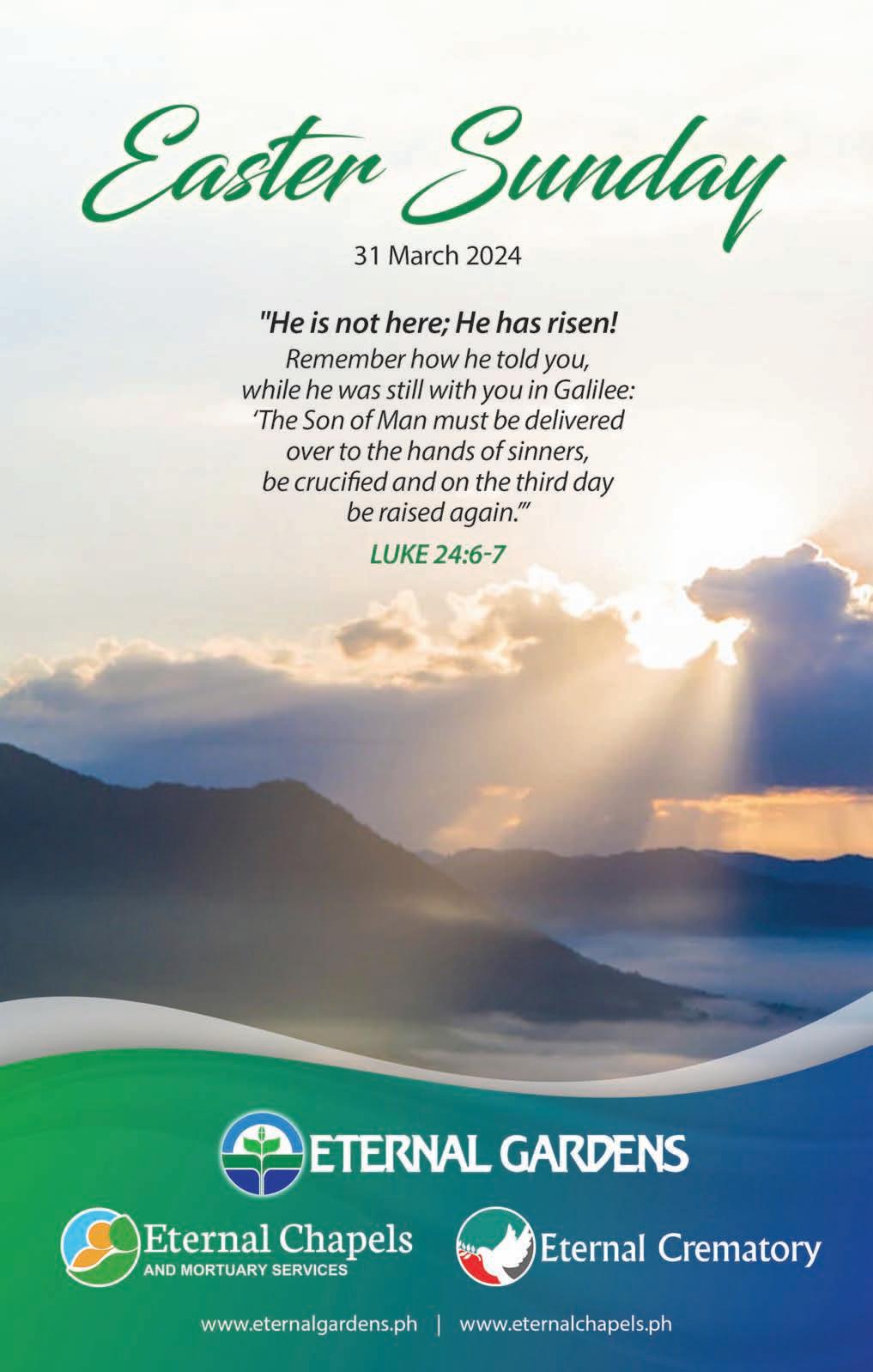 News BusinessMirror www.businessmirror.com.ph Saturday-Sunday, March 30-31, 2024 A3 Continued on A4 AN aerial view captures the bustling activity at the Eva Macapagal Passenger Terminal in Surigao City, where the Department of Tourism anticipates a surge of travelers heading to Siargao, Cebu and Leyte during the peak of Good Friday to Easter Sunday in Holy Week. ERWIN MASCARIÑAS PASSENGERS carefully traverse a narrow wooden plank, making their way to a moored passenger vessel heading to San Jose, Dinagat Province, at Boulevard Port. This bustling port, alongside another in Surigao City, serves as a gateway for travelers during Holy Week bound for Siargao and Dinagat Islands. ERWIN MASCARIÑAS Liza Mazo, Office of Civil Defense (OCD) Caraga chief, said the Regional Disaster Risk Reduction Management Council (RDRRMC) Operations Center has been placed under a Blue Alert status for the observance of the Holy Week. Disaster units and their respective operation centers are now under blue alert status in preparation for the observance of the Holy Week. The emergency response of government agencies is now on standby alert for any incident for church-goers, travelers and tourists, and commuters,” said Mazo. Mazo added, “We encourage all our personnel on duty during the Holy Week to keep on monitoring the situation, and the responders on the ground to keep safe while ensuring the safety of the communities under their watch.”