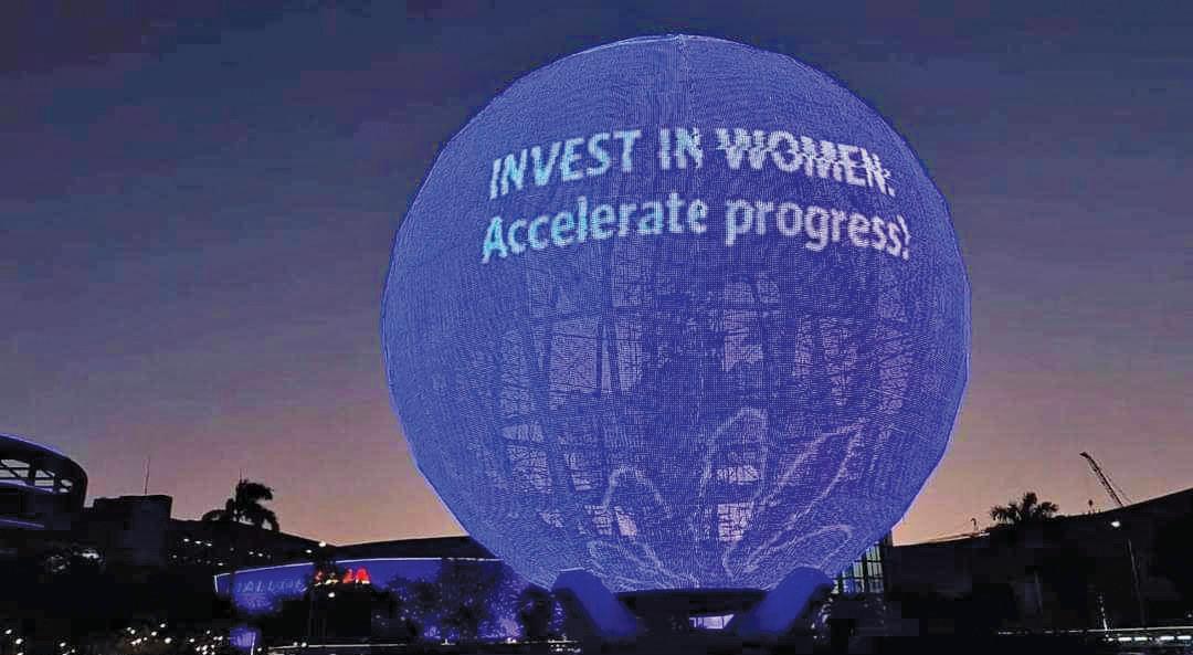 The iconic MOA Globe lights up in purple to celebrate Women’s Month.