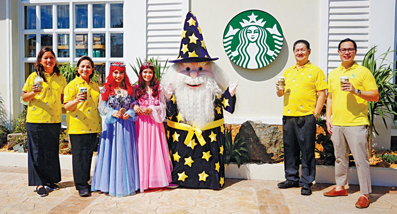 StarbUcKS @ EnchantED KIngDOM: anna Mamon, head of business Development & Digital transformation, cynthia r . Mamon, cOO, cesar O. Mamon, President and cEO, and Mr. nico r . Mamon, head of Organization Development & corporate Planning, spearhead the ceremonial opening of Starbucks coffee within the expansive Enchanted Kingdom. a s pioneers in local family outdoor entertainment and fantasy-Disney theme parks, their vision continues to transform experiences. BERNARD TESTA
