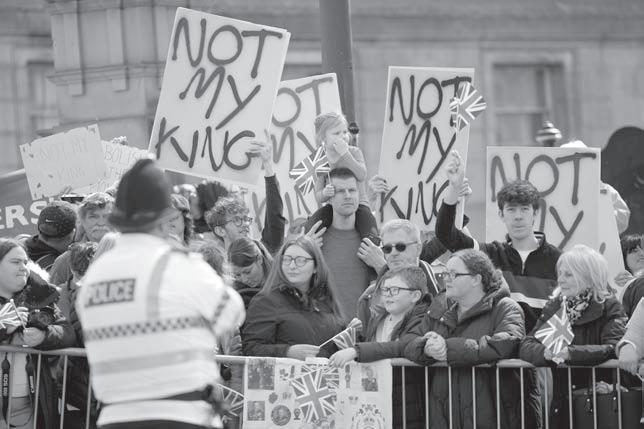 Some even met it with disdain. Republican protesters gathered outside to holler “Not my king” for a celebration of an institution they say stands for privilege and inequality, in a country of deepening poverty and fraying social ties. Handfuls were arrested.