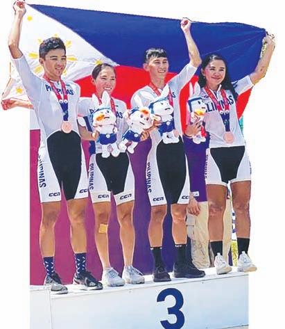 A riana Evangelista, Shagne Yaoyao, EJ Flores and Jerico Rivera clocked 52 minutes and 25 seconds to finish third in the 14.80-km event raced over a 3.7-km circuit in the foothills of Kulen Mountain in the city 300 kms from the Cambodian capital made world famous by the mystical Angkor Wat heritage site.