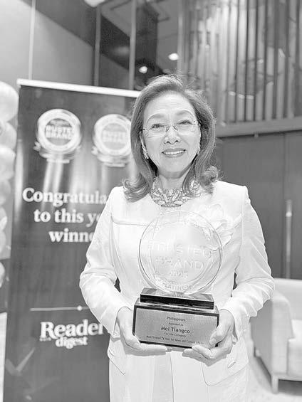 VETERAN broadcast journalist and 24 Oras anchor Mel Tiangco has once again proven why Filipinos turn to her for credible news. At the 27th Reader’s Digest Trusted Brand Awards on April 4 at Marco Polo Ortigas Manila, she was honored as Most Trusted TV News and Current Affairs Host— the latest in a string of recognitions that span her remarkable 44-year career. “Thank you for telling me here and now that I have been doing a good job,” Tiangco said upon accepting the award. Reflecting on two decades as the face of 24 Oras’ primetime newscast, she added, “It took me 44 years to get this. Forty-four years and my heart is filled with overwhelming happiness, joy and fulfillment at the thought that I have attained the ultimate achievement in my profession—to be acclaimed as the most trusted, having been determined solely by the general public.” Tiangco paid tribute to GMA Network and GMA Integrated News for fostering the high standards of trust and integrity she’s known for. “I am truly blessed to belong to an organization whose every member— from writers and reporters to technical crews—shares the same commitment to delivering truthful, relevant information to millions of Filipinos.”