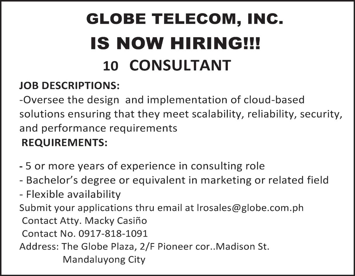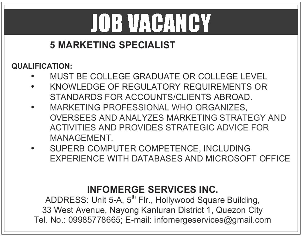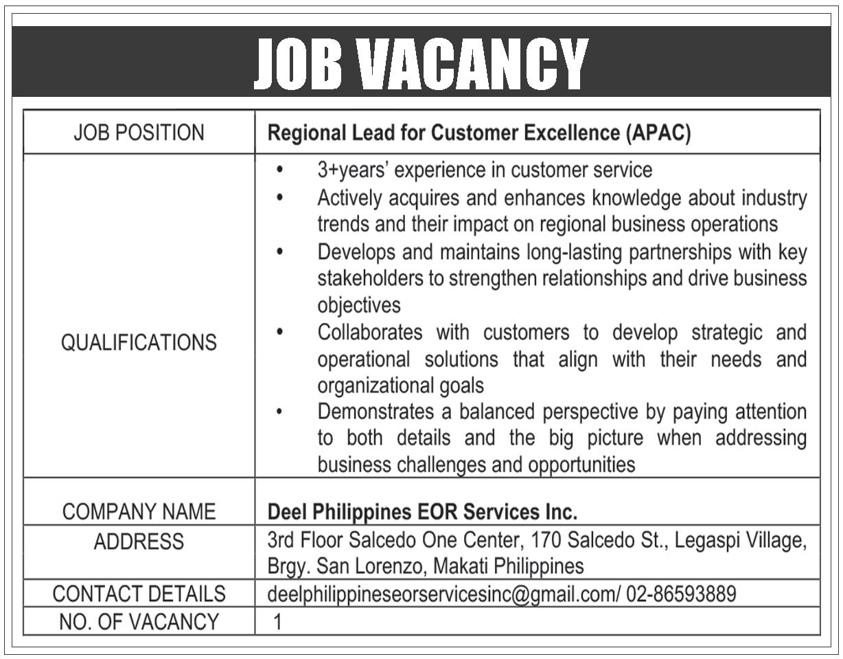 Basic Qualification: College level with customer service representative experience. Salary Range: Php 30,000 - Php 59,999