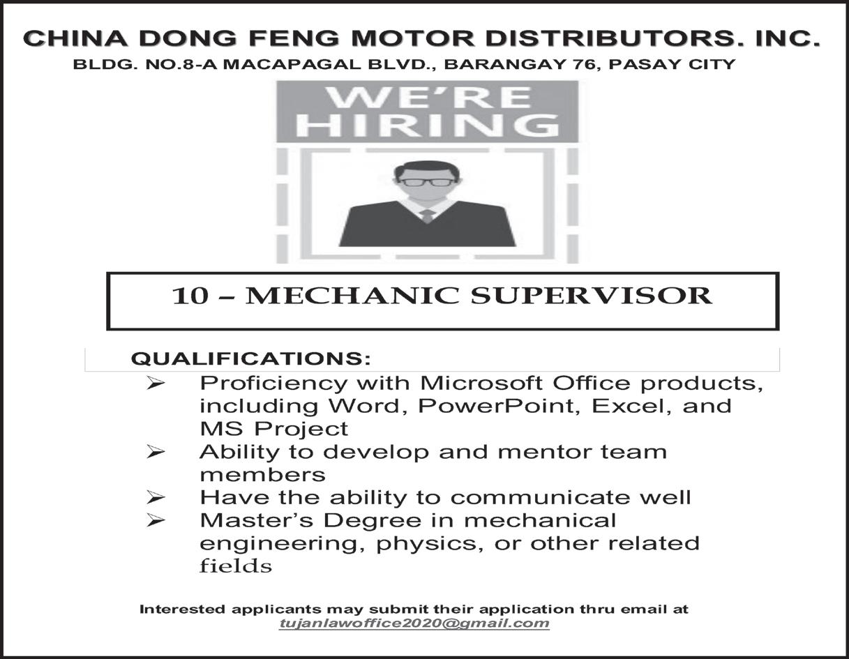 Brief Job Description: Provide help to management including hiring and training, and keeps management updated on team performance. Basic Qualification: College graduate. Fluent in Cantonese, Taiwanese, and Mandarin languages. Excellent communication skills. At least 1-year experience relevant to the position.