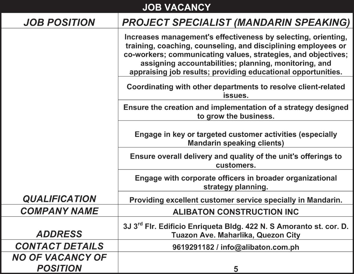 obtaining approval from senior management when required. Basic Qualification: At least college graduate, can speak, write and type in Mandarin and Vietnamese languages. Salary Range: Php 30,000 - Php 59,999