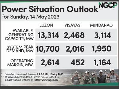 A broader look at today’s business EJAP JOURNALISM AWARDS BUSINESS NEWS SOURCE OF THE YEAR (2017, 2018, 2019, 2020, 2021) DEPARTMENT OF SCIENCE AND TECHNOLOGY 2018 BANTOG MEDIA AWARDS ROTARY CLUB OF MANILA JOURNALISM AWARDS 2006 National Newspaper of the Year 2011 National Newspaper of the Year 2013 Business Newspaper of the Year 2017 Business Newspaper of the Year 2019 Business Newspaper of the Year 2021 Pro Patria Award PHILIPPINE STATISTICS AUTHORITY 2018 Data Champion www.businessmirror.com.ph n Sunday, May 14, 2023 Vol. 18 No. 209 P25.00 nationwide | 2 sections 12 pages | 7 DAYS A WEEK