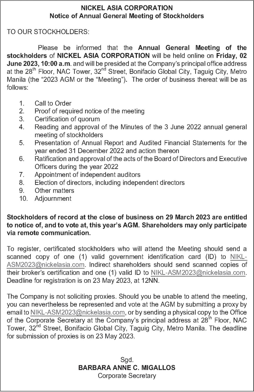NewsSunday BusinessMirror www.businessmirror.com.ph Sunday, May 14, 2023 A2 Continued from A1