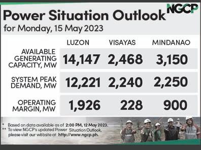 n Monday, May 15, 2023 Vol. 18 No. 210 See “Millions,” A2 PESO EXCHANGE RATES n US 55.6720 n JAPAN 0.4139 n UK 69.6846 n HK 7.1052 n CHINA 8.0109 n SINGAPORE 41.8209 n AUSTRALIA 37.3058 n EU 60.7827 n KOREA 0.0418 n SAUDI ARABIA 14.8455 Source: BSP (May 12, 2023)