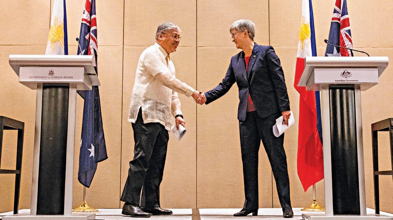 aUS t ralIan Foreign Minister Penny Wong, right, speaks besidePhilippine Foreign af fairs Secretary Enrique Manalo during a joint press conference at a hotel in Makati city on thursday May 18, 2023.