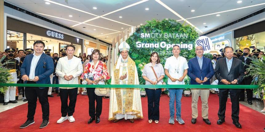 THE MALL OF BATAAN SM City Bataan, the 83rd SM mall and the first mall in the province of Bataan, opened on May 19. Leading the ceremonial ribbon cutting are (from left) SM Engineering Design and Development Corp. President Hans T. Sy Jr., SM Supermalls President Steven T. Tan, Bataan Vice Governor Cristina M. Garcia, His Excellency Most Rev. Ruperto Santos, D.D. Bishop of Balanga, Vice Mayor City of Balanga Vianca Lita Gozon, 2nd District Rep. Albert S. Garcia, SM Prime Holdings Inc. President Jeffrey C. Lim, and Super Value Inc. President Herbert T. Sy. SM SUPERMALLS