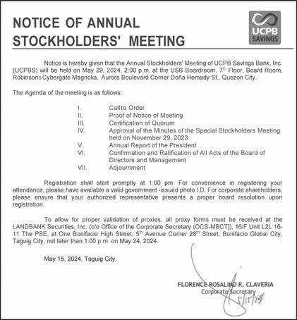 PESO EXCHANGE RATES US 57.7630 JAPAN 0.3697 UK 73.4110 HK 7.4076 CHINA 7.9847 SINGAPORE 42.8923 AUSTRALIA 38.5106 EU 62.7364 KOREA 0.0425 SAUDI ARABIA 15.4018 Source BSP21May2024 IPEF TO HELP PHL BOOST VALUE FOR PROCESSED NICKEL ORES See “BOP,” A Farm damage by El Niño climbs to ₧9.5B, says DA A broader look at today’s business Wednesday, May 22, 2024 Vol. 19 No. 218