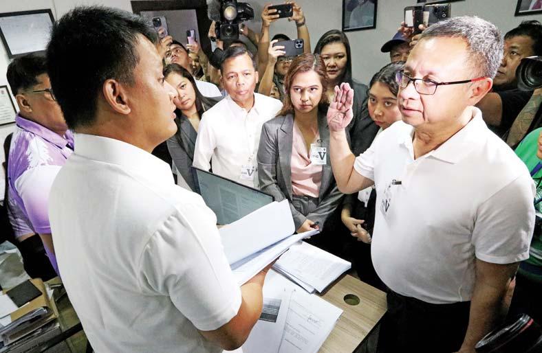 PHARMA DRAMA Atty. Joseph Vincent Go, representing BellKenz Pharmaceutical, files a cyber-libel case against Dr. Tony Leachon at the National Bureau of Investigation Cybercrime Division in Quezon City on Tuesday, May 21, 2024. The case alleges that Dr. Leachon spread malicious accusations against the pharmaceutical company, involving an alleged multilevel marketing (MLM) scheme in the medical industry. The allegation that the MLM scheme is corrupting doctors and hurting patients is part of a Senate investigation. NONOY LACZA