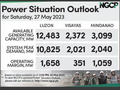 sign blame. The electricity industry is interconnected and our operations are naturally affected by what the other sectors do,” said NGCP spokesperson Atty. Cynthia Alabanza.