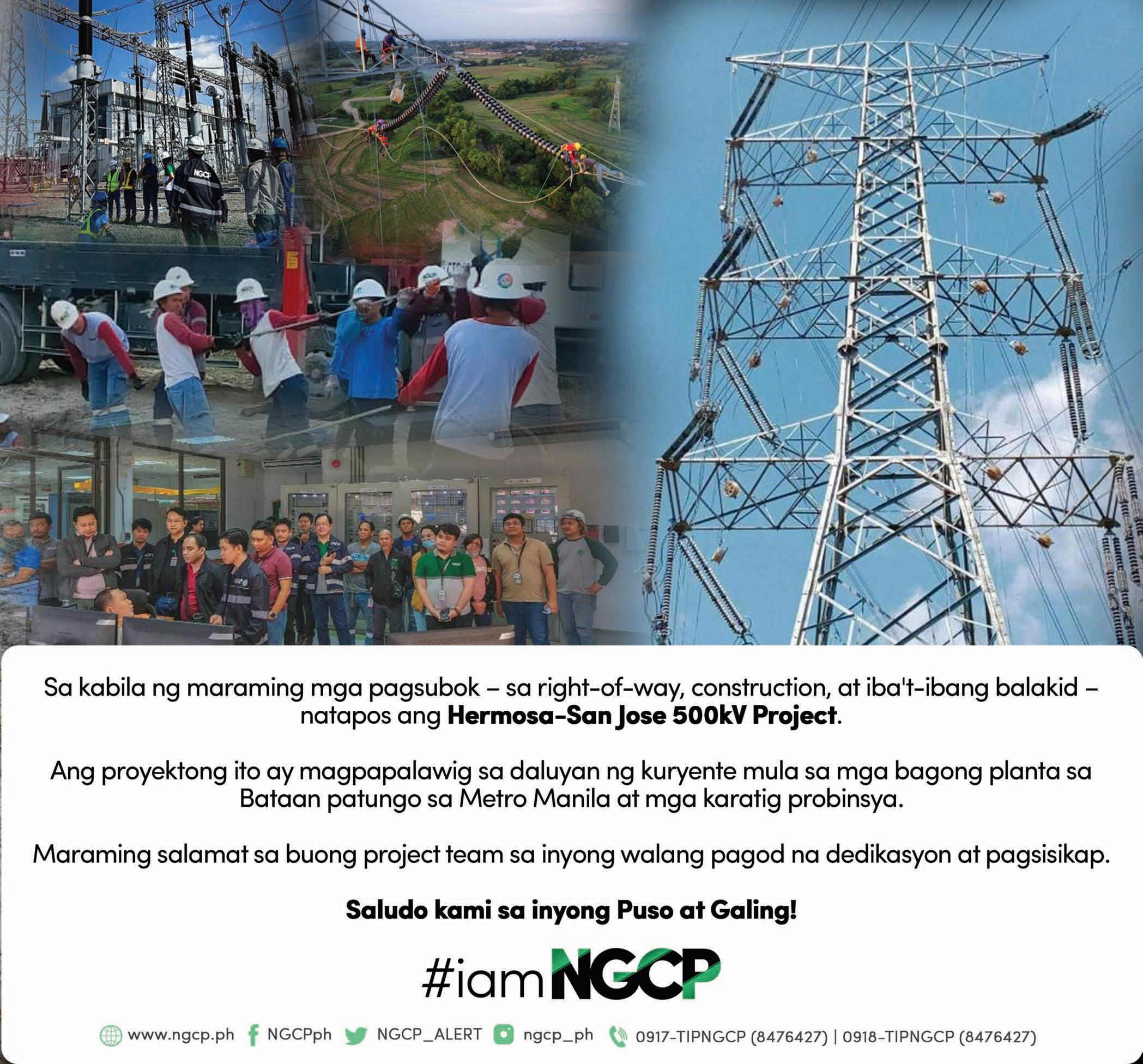 THE National Grid Corporation of the Philippines (NGCP) has finally energized the Hermosa-San Jose 500-kiloVolt (kV) transmission line, an Energy Project of National Significance (EPNS) valued at P10.2 billion and is crucial to the Luzon grid.