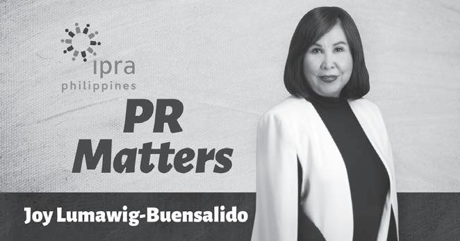 PR Matters is a roundtable column by members of the local chapter of the United Kingdom-based International Public Relations Association (Ipra), the world’s premiere association for senior communications professionals around the world. Joy Lumawig-Buensalido is the President and CEO of Buensalido PR and Communications. She was past Chairman of the IPRA Philippine chapter for two terms.