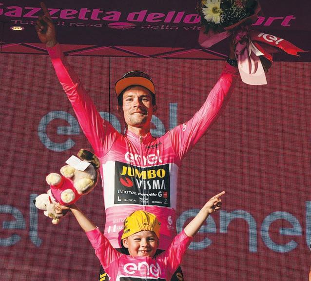 GIRO CHAMP Primo Roglic celebrates his Giro d’Italia victory—the 33-year-old’s fourth Grand Tour to go with three Spanish Vuelta titles—with his son, Lev, who seems more excited than his dad, on Sunday in Rome, Italy. AP