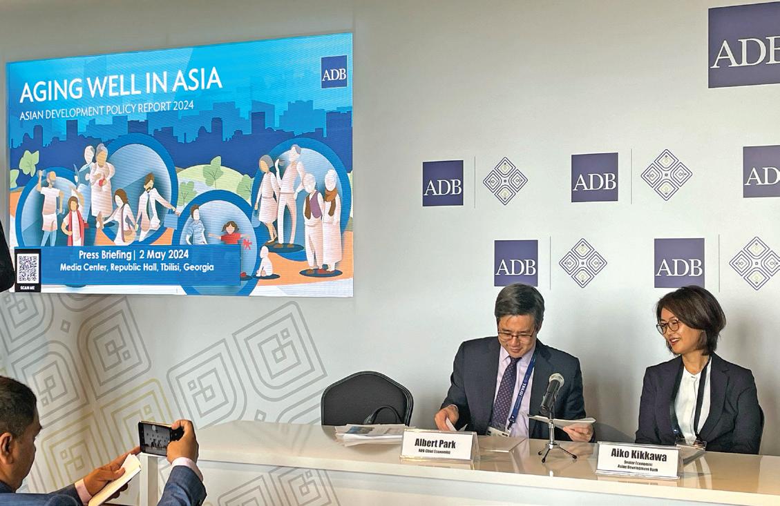 ADB Chief Economist Albert Park and ADB Senior Economist Aiko Kikkawa participate in the Asian Development Policy Report press briefing held on May 2, 2024, in Tbilisi, Georgia. CAI ORDINARIO
