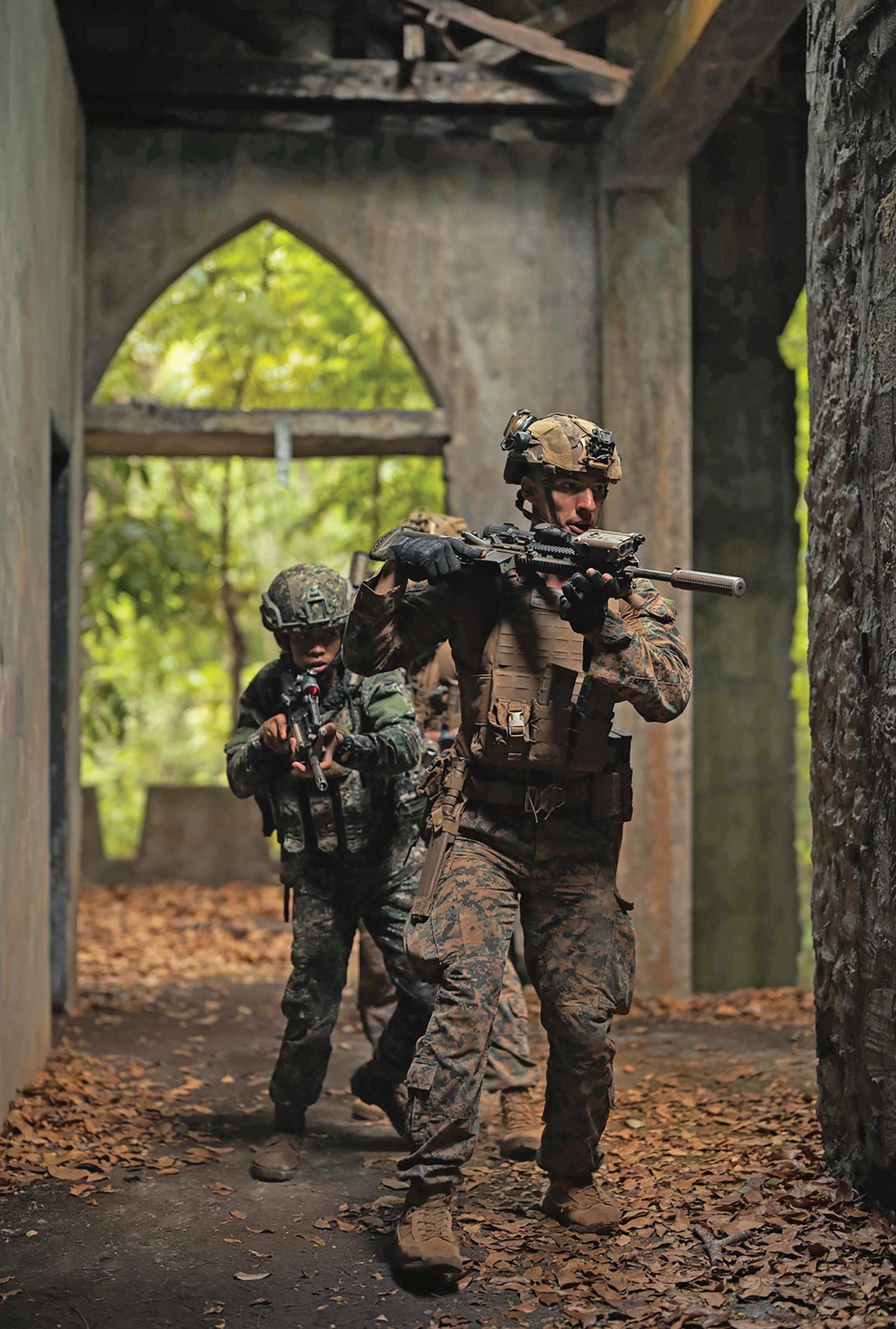 U.S. Marine Corps Cpl. Donovon Munn, a native of California and an infantry rifleman with 3rd Littoral Combat Team, 3rd Marine Littoral Regiment, 3rd Marine Division, and a Philippine Marine with Marine Battalion Landing Team 10, clear