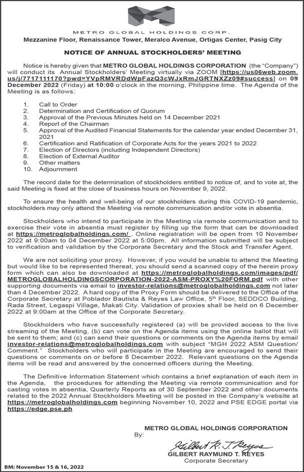 Wednesday, November 16, 2022 Editor: Tet Andolong B7 BusinessMirror