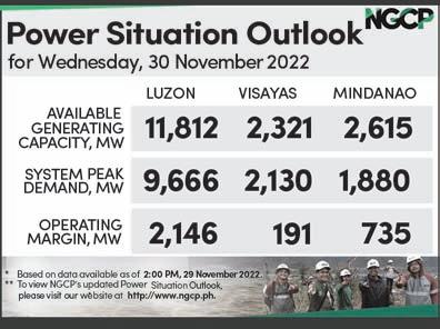 n Wednesday, November 30, 2022 Vol. 18 No. 49 PESO EXCHANGE RATES n US 56.7960 n JAPAN 0.4088 n UK 67.9337 n HK 7.2687 n CHINA 7.8811 n SINGAPORE 41.1834 n AUSTRALIA 37.7580 n EU 58.7327 n KOREA 0.0424 n SAUDI ARABIA 15.1174 Source : BSP(29November2022)