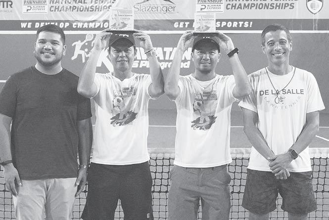 Sharing the podium finish were women’s doubles champions Khyshana Hitosis-Trizzia Talan, who beat Myra Era-Anne Galias; Legends men’s doubles 100 titlists Carlo Gomez and Ramon Hitosis, who foiled Teddy Martin and Levi Evangelista; Legends men’s doubles 110 winners Boy Concepcion-Evangelista, who toppled Ediemar Estrella-Dean Pe; Legends men’s doubles 120 victors Roger Ventura and Jun Java, who downed Concepcion and Romy Mabella; and Legends men’s doubles 130 winners Ventura and Dante Villar, who edged Mabella and Butch Ferrero.