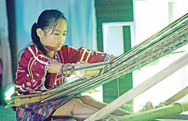 YOUNG Leianzy Mamites diligently weaving at the loom.