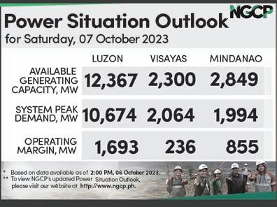 PESO EXCHANGE RATES n US 56.6320 n JAPAN 0.3814 n UK 69.0684 n HK 7.2326 n CHINA 7.7440 n SINGAPORE 41.4401 n AUSTRALIA 36.0633 n EU 59.7524 n KOREA 0.0421 n SAUDI ARABIA 15.0998 Source BSP (October 6, 2023) A broader look at today’s business BusinessMirror EJAP JOURNALISM AWARDS BUSINESS NEWS SOURCE OF THE YEAR (2017, 2018, 2019, 2020, 2021) DEPARTMENT OF SCIENCE AND TECHNOLOGY 2018 BANTOG MEDIA AWARDS ROTARY CLUB OF MANILA JOURNALISM AWARDS 2006 National Newspaper of the Year 2011 National Newspaper of the Year 2013 Business Newspaper of the Year 2017 Business Newspaper of the Year 2019 Business Newspaper of the Year 2021 Pro Patria Award PHILIPPINE STATISTICS AUTHORITY 2018 Data Champion www.businessmirror.com.ph n Saturday, October 7, 2023 Vol. 18 No. 355 P25.00 nationwide | 16 pages | 7 DAYS A WEEK