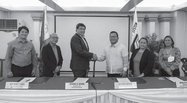 CHAirM An romarico T. Alvarez (right) with Svp and executive Assistant to the board of Directors and executive Committee Armando de Guzman (center), Svp of Central Corporate Services irzan Jureidini (left), and president Atty. Marianne Cruz (far left).