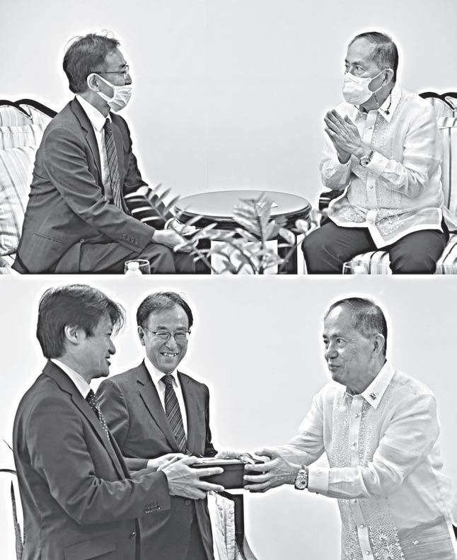 ARIGATO, KONNICHIWA Labor Secretary Bienvenido E. Laguesma (upper and lower photos, right) on October 5 sent good wishes to the outgoing minister of the Embassy of Japan’s Nakata Masahiro (top photo, left), as well as a warm welcome to the latter’s successor: Minister Daisuke Nihei (bottom photo, left) at the Department of Labor and Employment headquarters. Nihei previously served as the director of the International Economy Division of Japan’s Ministry of Foreign Affairs. Japan and the Philippines enjoy vibrant bilateral labor relations, with the former currently hosting some 280,000 migrant Filipinos, of which almost 48,000 of them are professionals and skilled workers, as well as technical interns. JEROME SAJISE/DOLE-IPS