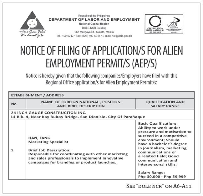 e amended FIA, the BOI said, also trims down the employment requirement for foreign investments in domestic market enterprises from 50 direct employees to now at least 15 Filipino employees.