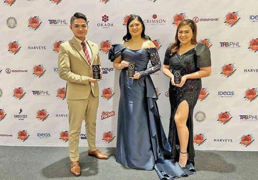 Representing the team were Nico Velasquez, Cor porate Group Director of Public Relations – Finalist for the Outstanding Mar keting Campaign category; Rowena Samone, Director of Sales and Marketing for Twin Lakes Hotel – Final ist for Outstanding Leader category, and Ma. Ysabelle Clarise Anne Bonoan, Sales Associate of Richmonde Hotel Ortigas – Finalist for Outstanding Sales and Mar keting Associate category.