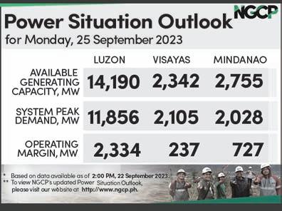 BusinessMirror ROTARY CLUB OF MANILA JOURNALISM AWARDS 2006 National Newspaper of the Year 2011 National Newspaper of the Year 2013 Business Newspaper of the Year 2017 Business Newspaper of the Year 2019 Business Newspaper of the Year 2021 Pro Patria Award 2018 Data Champion EJAP JOURNALISM AWARDS BUSINESS NEWS SOURCE OF THE YEAR (2017, 2018, 2019, 2020, 2021) DEPARTMENT OF SCIENCE AND TECHNOLOGY 2018 BANTOG MEDIA AWARDS w P25.00 nationwide | 2 sections 20 pages | n Monday, September 25, 2023 Vol. 18 No. 343