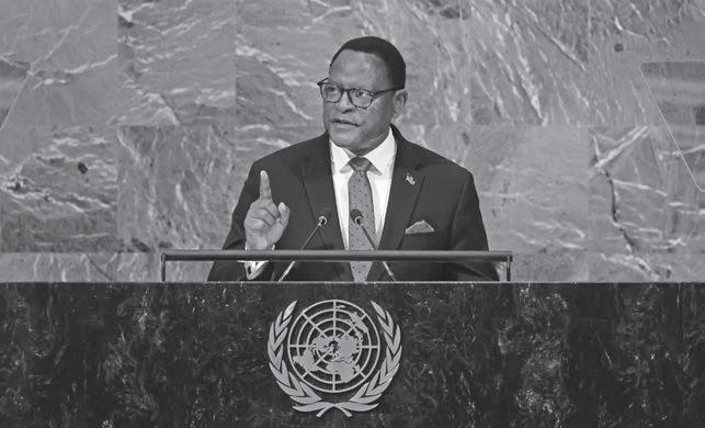 President of Malawi Lazarus Chakwera addresses the 77th session of the United nations General Assembly, at Un headquarters on september 22, 2022. AP Photo/JA s on DeCrow