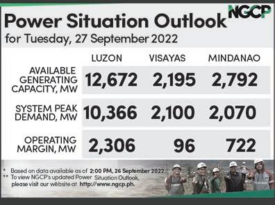 E nergy Secretary Raphael M. Lotilla said “Karding” also partly affected power supply in Tarlac, Zambales, Pampanga and Quezon. T he NDRRMC will deploy power generators there.