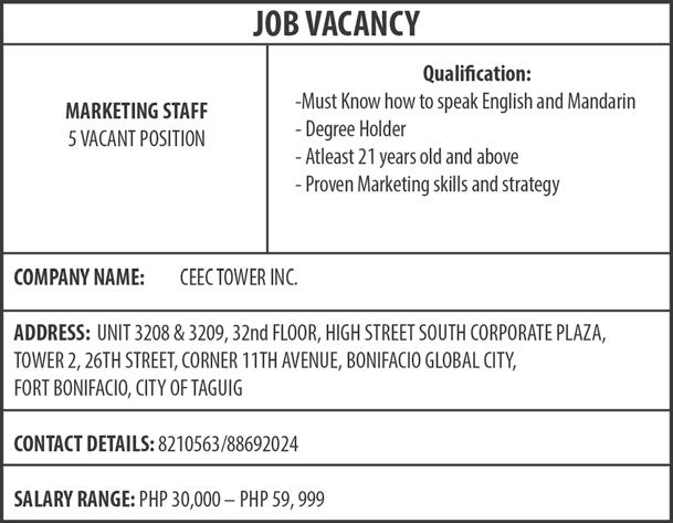 www.businessmirror.com.ph P. | | 7 DAYS A WEEK PESO EXCHANGE RATES US 56.9110 ■ JAPAN 0.3819 ■ UK 69.1867 ■ HK 7.2767 ■ SINGAPORE 41.5894 ■ AUSTRALIA 36.4003 ■ SAUDI ARABIA 15.1714 ■ EU 60.1720 ■ KOREA 0.0421 ■ CHINA 7.7827 Source: BSP (September 27, 2023) BusinessMirror A broader look at today’s business ■ Thursday, September 28, 2023 Vol. 18 No. 346 ROTARY CLUB OF MANILA JOURNALISM AWARDS 2006 National Newspaper of the Year 2011 National Newspaper of the Year 2013 Business Newspaper of the Year 2017 Business Newspaper of the Year 2019 Business Newspaper of the Year 2021 Pro Patria Award PHILIPPINE STATISTICS AUTHORITY 2018 Data Champion EJAP JOURNALISM AWARDS BUSINESS NEWS SOURCE OF THE YEAR (2017, 2018, 2019, 2020) DEPARTMENT OF SCIENCE AND TECHNOLOGY 2018 BANTOG MEDIA AWARDS IN the ever-changing Philippine business landscape, the interplay of space, art and humanity is vividly captured as people appear like specks beneath a towering skyscraper adorned with the Calamansi & Sampaguita mural (2016) by artist Pastel. This captivating artwork adds a striking contrast to the scenery along McKinley Parkway in Bonifacio Global City, Taguig. BERNARD TESTA