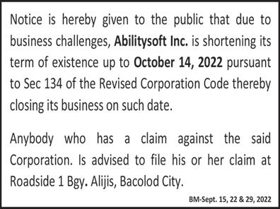 With the approval of GAB on third and fi nal reading on Wednesday, Romualdez said the House met its self-imposed deadline to terminate the deliberations on the proposed 2023 budget prior to the adjournment of session from October 1 until November 6, 2022.