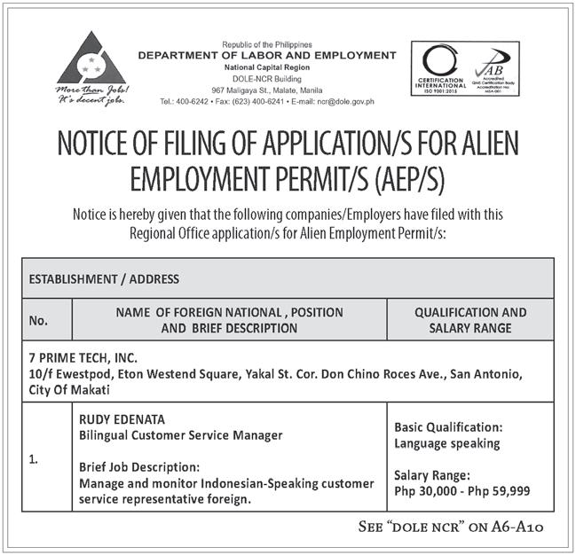 He stressed that the IT and Business Process Management (ITBPM) sector has its unique work arrangement and “deliverables,” as do sectors like manufacturing, retail, fi nance services, among others, “who may need to have all employees render in-person work at all times.”