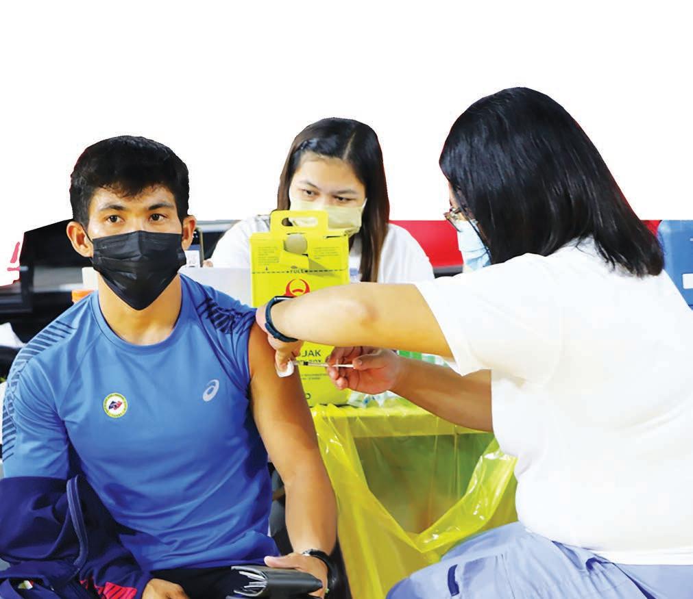 Tokyo Olympic rower Cris Nievarez led more than 160 athletes and coaches from rowing, baseball, canoe kayak, karate, table tennis, judo, kurash, gymnastics, taekwondo, water polo and diving who availed themselves of the booster shots.