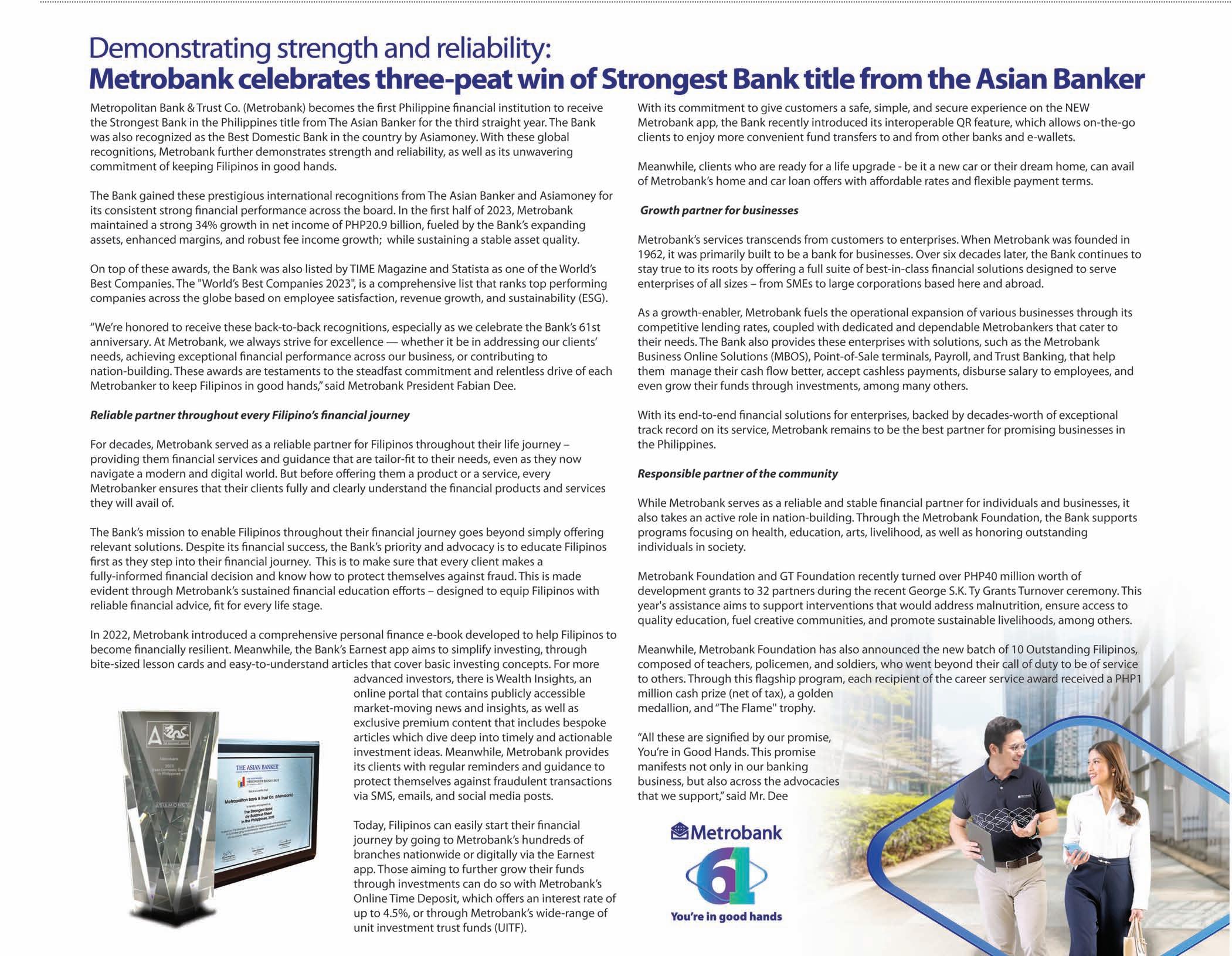 BusinessMirror www.businessmirror.com.ph Friday, September 29, 2023 A2 News BSP… Continued from A1 Develop… Continued from A1