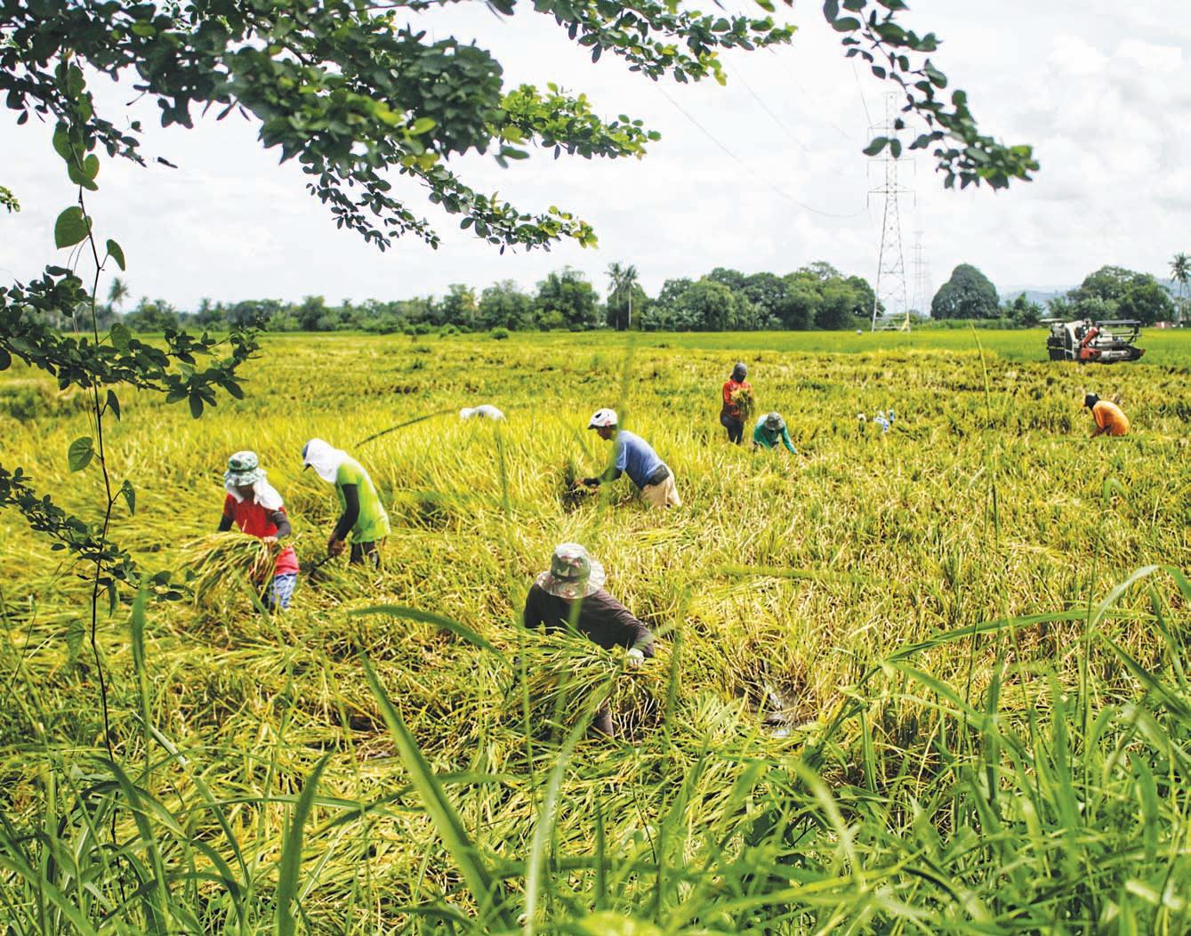 Far MWO r K Er S skillfully wield sickles as they harvest palay on a roadside farm in calauan, laguna. Meanwhile, the cost of essential Filipino staples, including rice, continues to rise despite government efforts to implement price caps on rice. BERNARD TESTA