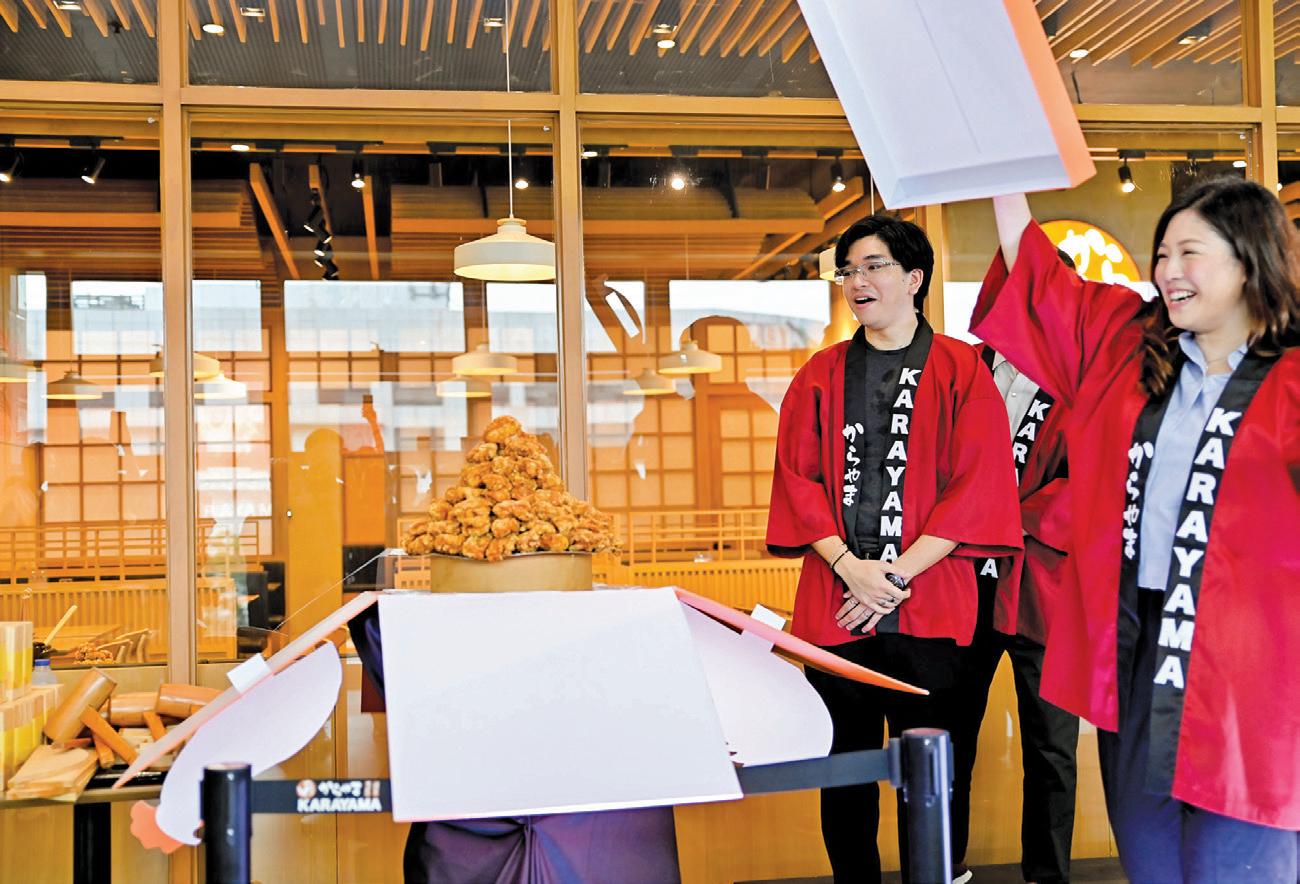 opening was highlighted by the unveiling of the unique and much taller version of its famous Chicken Mountain composed of 100 pieces of kara-age stacked together.