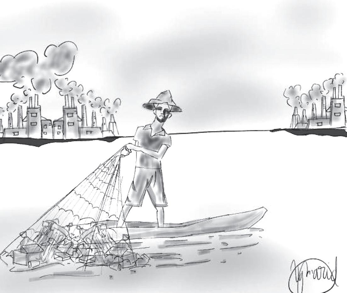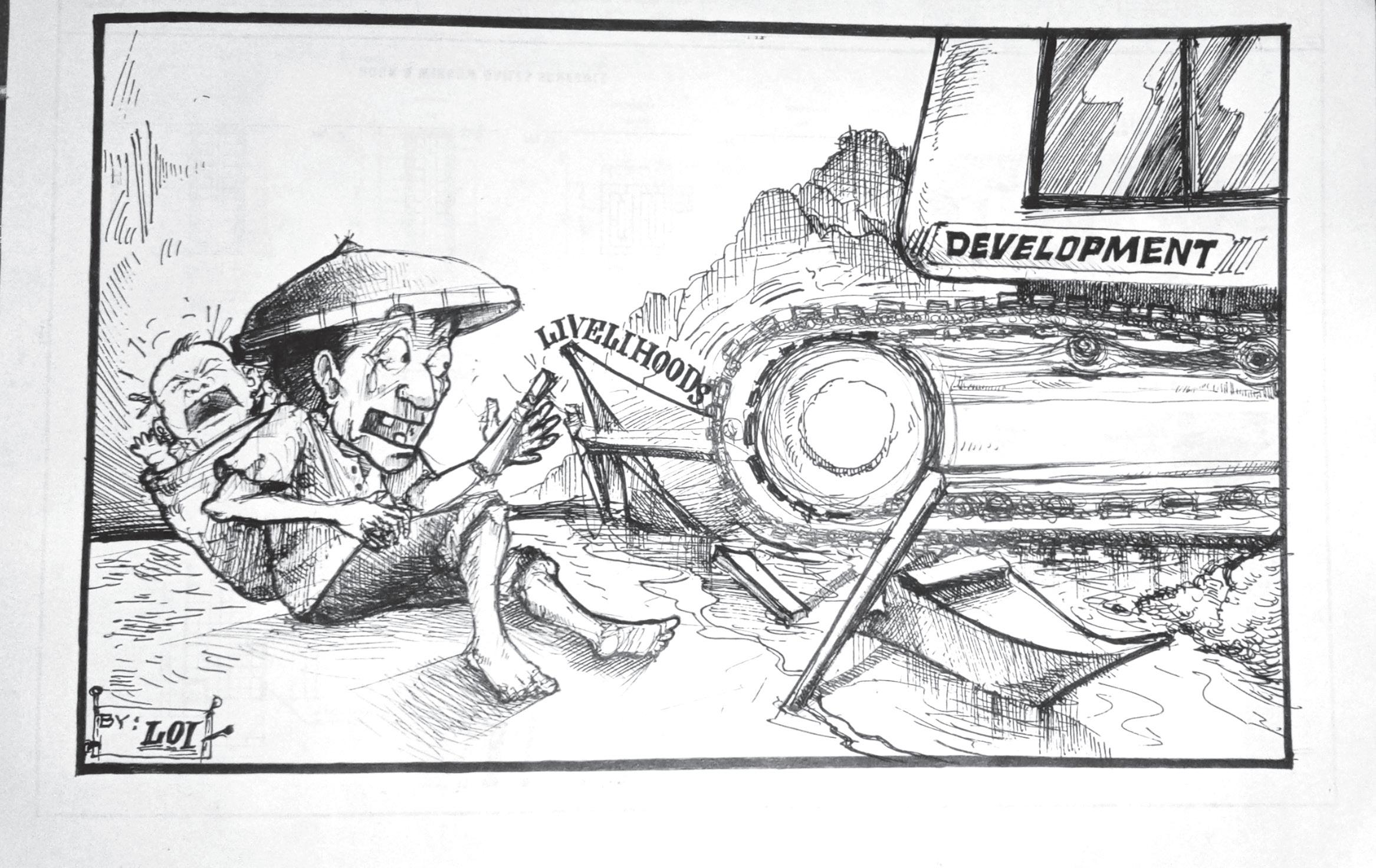 His winning cartoon depicted a harrowing vision of the near future, questioning how poor families would survive as destructive development projects continued to threaten their livelihoods.