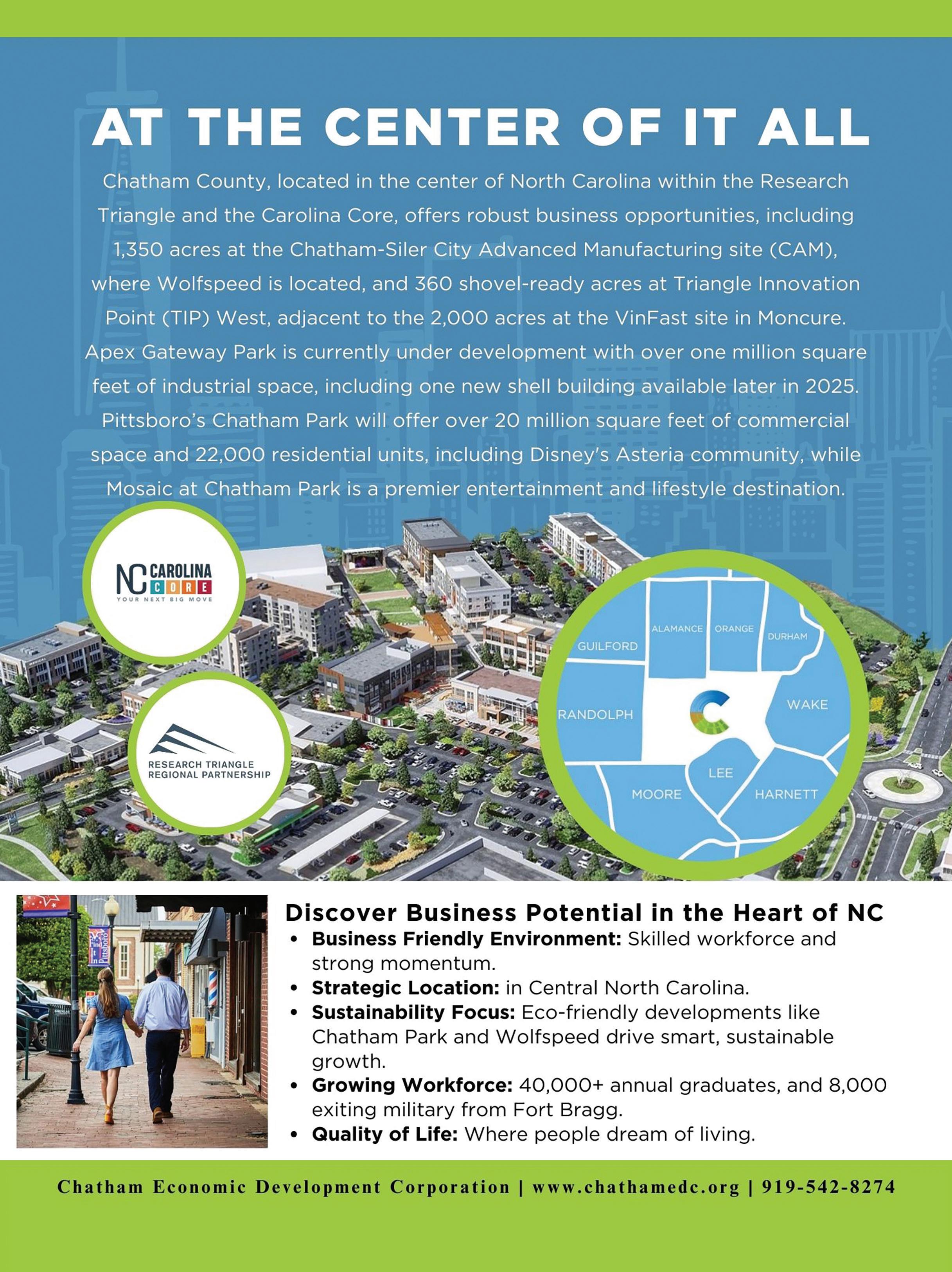 Chung has served under three governors – Pat McCrory, Roy Cooper and Josh Stein – and three presidents – Barack Obama, Donald Trump and Joe Biden. He says it’s still too early to tell which direction Trump’s second term industrial policies will take. But any company that comes out of those industrial policies will need new locations, giving North Carolina targets to woo. “It’s hard to predict the future, and that’s what makes economic development a fascinating business at times,” he says. “There is no guarantee that tomorrow will look like today, and that’s what keeps us on our toes.”