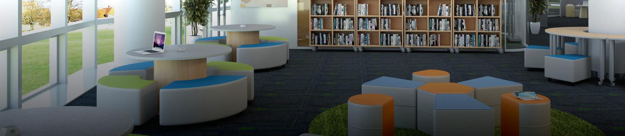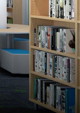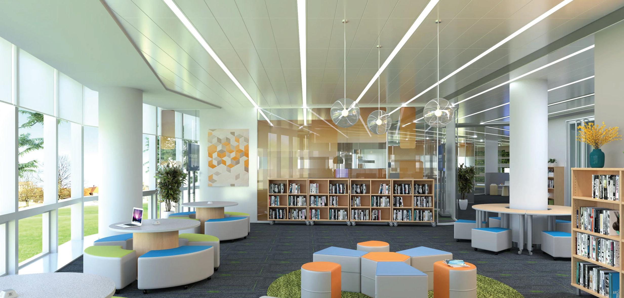 and bright study spaces create areas for individual or collaborative work. Contemporary furniture and custom seating fuse innovation with functionality.
