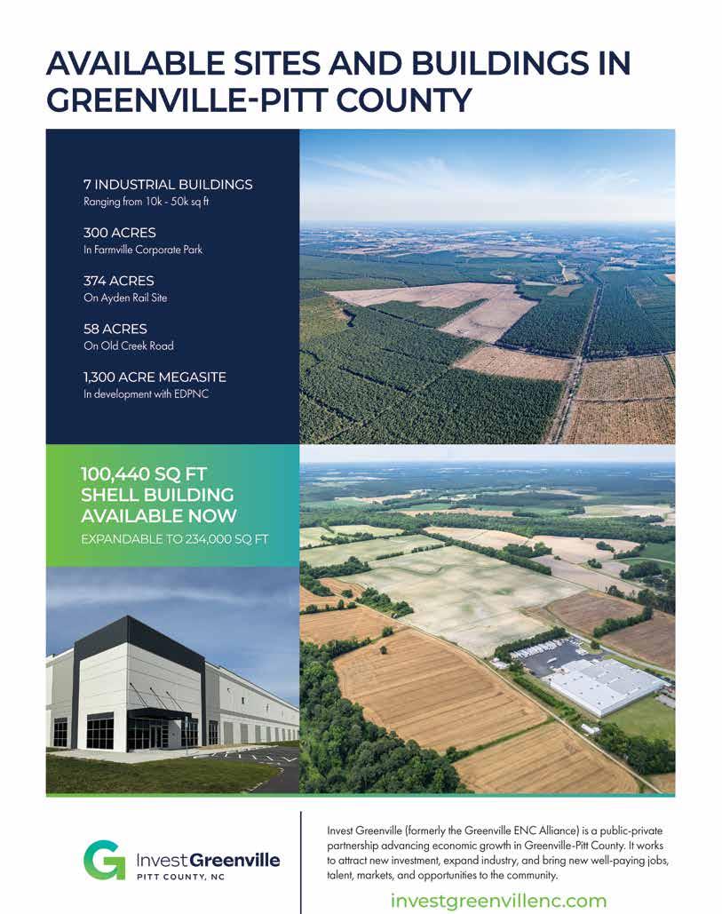Economic development requires a group effort. “Since 2020, the NCGTPEDR has achieved significant success in strengthening state and local relationships, supporting the retention and expansion of existing companies, recruiting new industries and building capacity through the development of shell buildings,” Pope says. “We have also deepened collaboration with our education partners, including community colleges and universities,