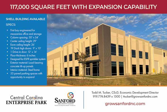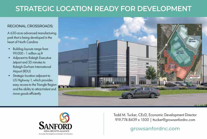 in private investment. “The arrival of one of the world’s most recognizable corporate brands is a fi tting way to close out development of the Pender Commerce Park and celebrate the transformation of a once quiet region into one of North Carolina’s busiest destinations for logistics and distribution operations,” he says.