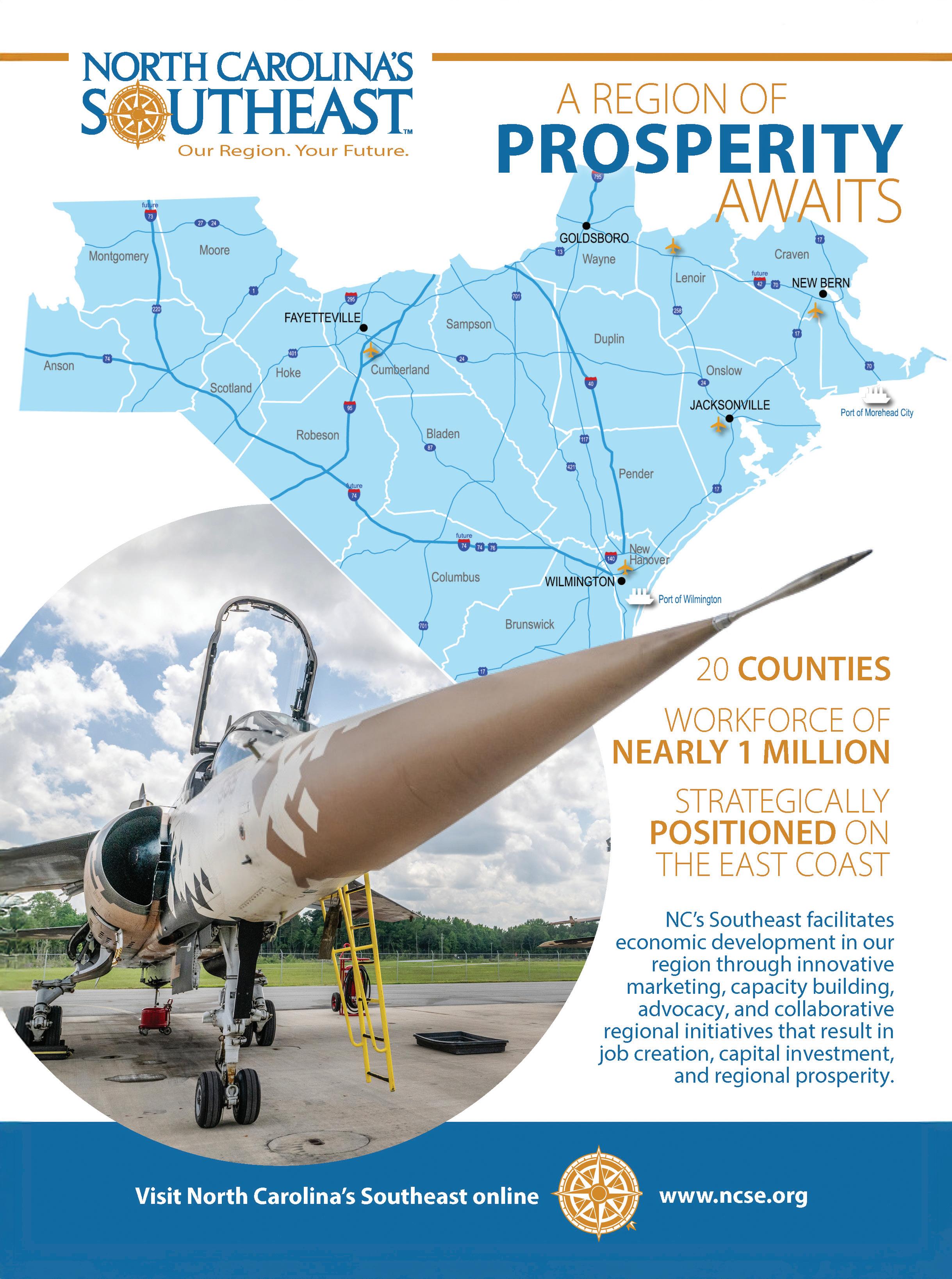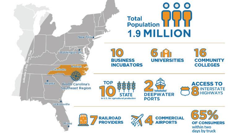 Textiles and agriculture remain economic contributors to the 20 counties that make up southeastern North Carolina. Now, e-commerce, technology, aerospace and defense firms are boosting the region.