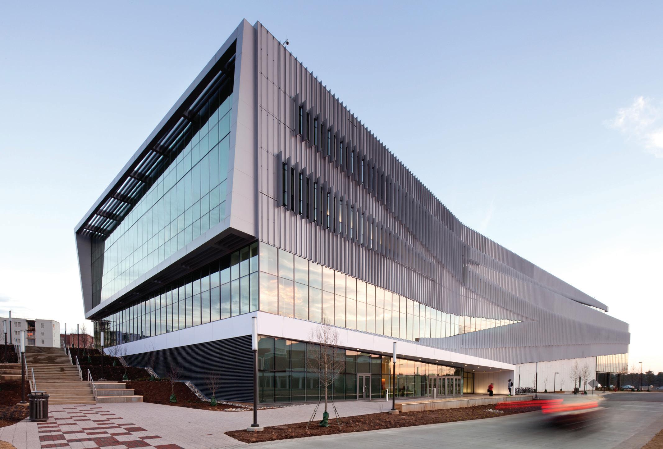 Built as the second main library on the NC State University campus, it supports the 72-year-old D. H. Hill Jr. Library. Opened in January 2013, the $115-million Hunt project alleviated insufficient study space at the state’s largest public university. With 221,000 square feet, the five-story library can accommodate about 1,700 students.