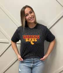 “I started the boutique because my family and I are big Chiefs fans and wanted to create a place to buy game day out ts. We obviously have an MU collection as well,” she says. “We print most of our shirts in-house. Not only do we o er game day shirts and sweatshirts, but we do also have a retail side where we sell pants, tops, and accessories.”